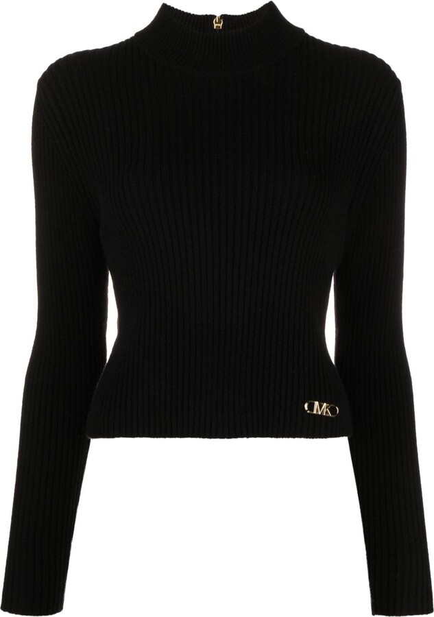 H H Women S Mock Neck Rib Knit Jumper Brown Dark The Warehouse